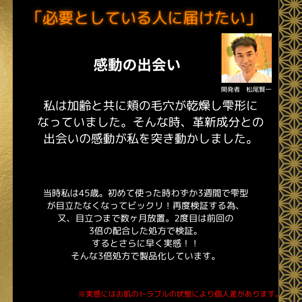 7年以上のモニタリングを経た開発の成果を、あなた自身のスキンケアに取り入れる第一歩を、今ここから踏み出してください。